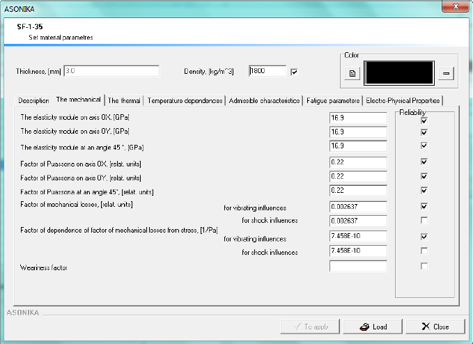 Material properties: