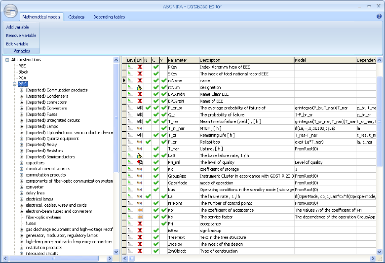 4) mathematical models that are used for reliability calculations are not part of the source code, but are stored in a symbolic form in the subsystem database. This allows to easily edit and create mathematical models using the database editor.