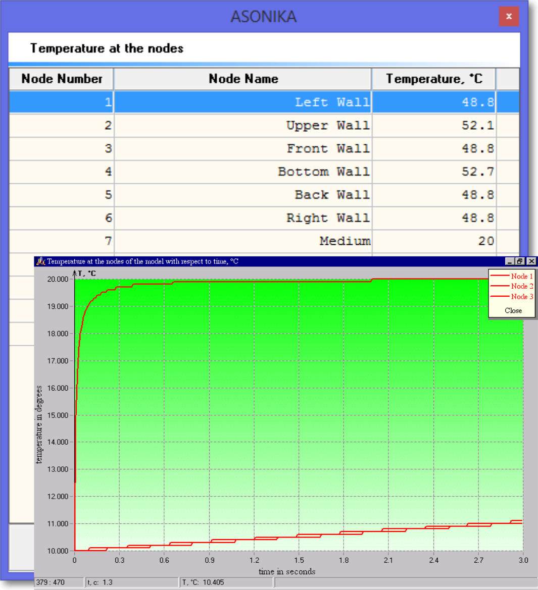 During the analysis of arbitrary design, the temperatures of the selected isothermal volumes are calculated and the plots for the temperature versus time for a transient thermal profile is derived